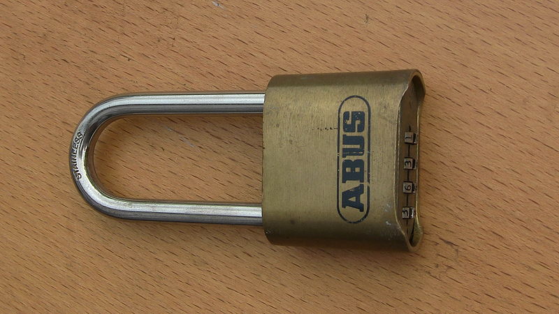 Picture of an ABUS model 180 HB combination lock from southern Sweden. Original unmodified file from an Canon Legria HF M406 camcorder in photo mode.