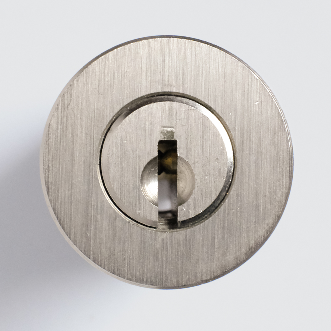 A view of the keyway of a KABA 8 cam lock. |