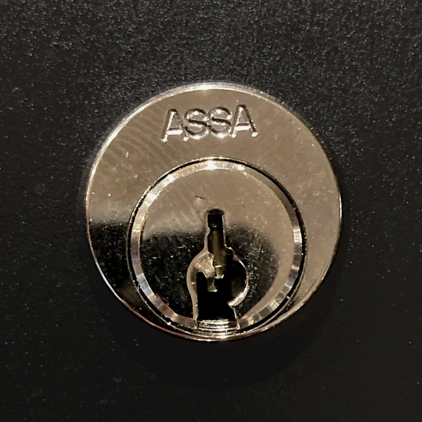 An ASSA_Maximum_Plus cam lock. Chrome finish. |