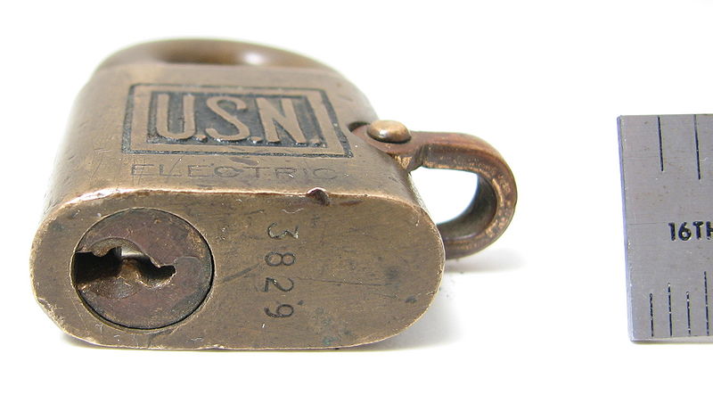 Revision as of 19:23, 12 November 2010 by JasonAller (talk | contribs) ({{Information |Description = Yale USN Electric padlock, showing key profile, first pin visible |Source = self-made |Date = ~~~~~ |Author = ~~~ |Permission = Creative Commons attribution share alike. }} {{cc-by-sa-3.0}})