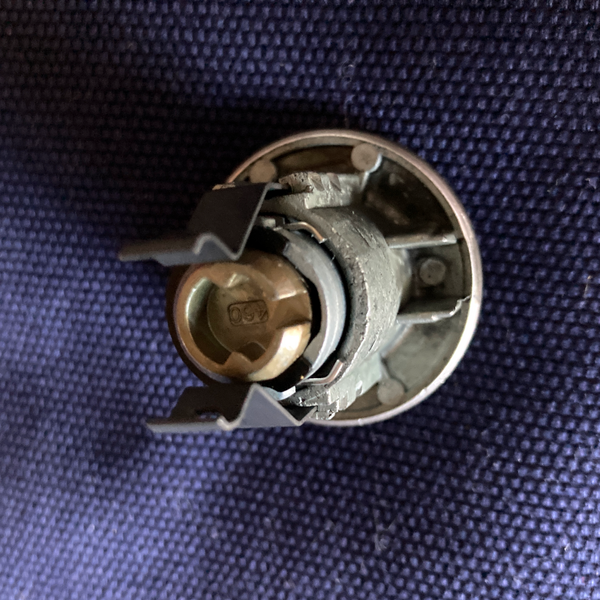 Revision as of 19:47, 20 June 2021 by Sandplum (talk | contribs) ({{Information |Description= Kwikset Smartkey key-in-knob cylinder 83280 in Satin Nickel(15) finish (rear). Fits Kwikset Tylo knob. |Author=Holly Poer |Source=Submitted to Lockwiki by author. |Date=20 June 2021 |Permission=Licensed under Creative Commo)